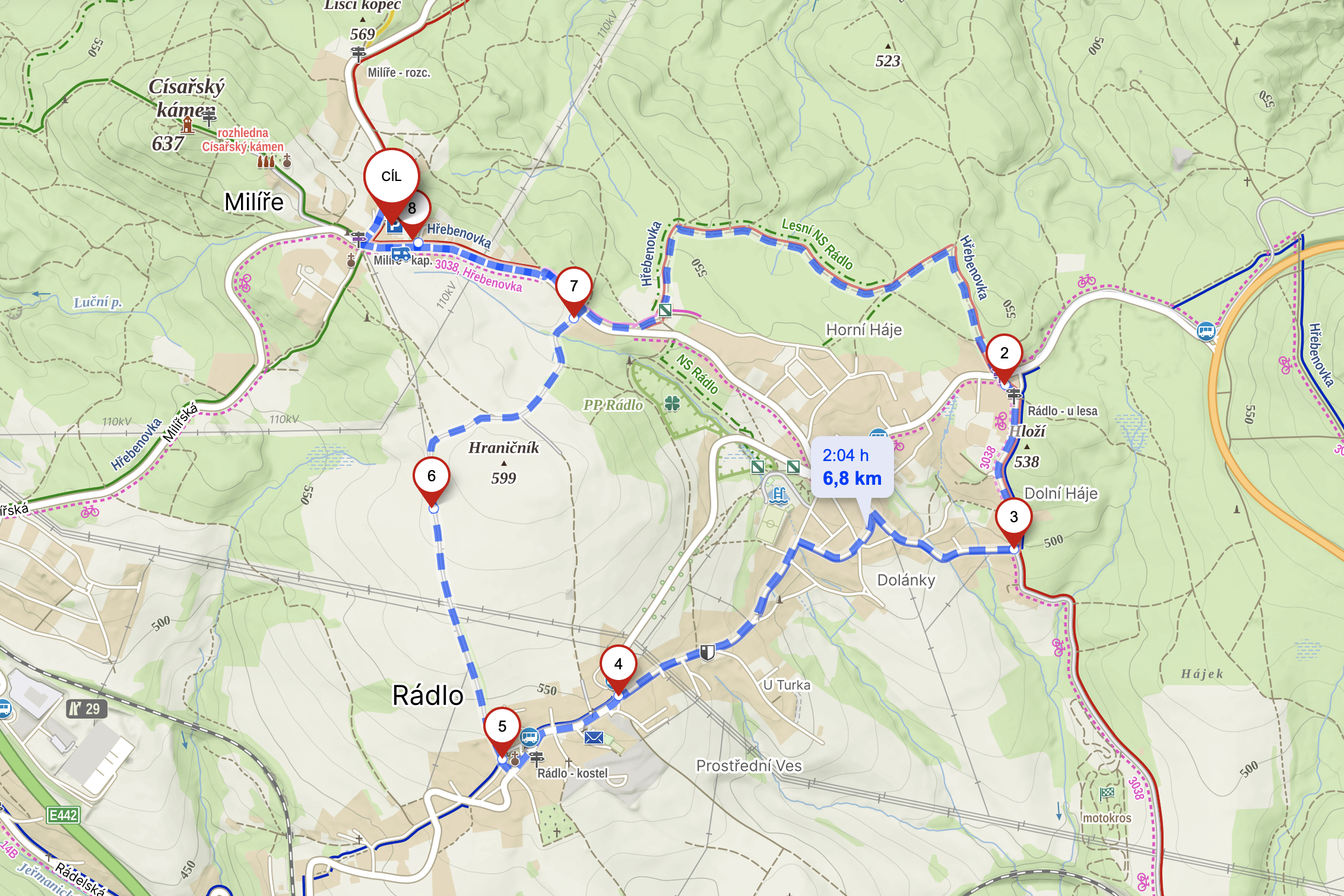 Okruh u Císařského kamene: Milíře, Rádlo a několik velkých hřišť